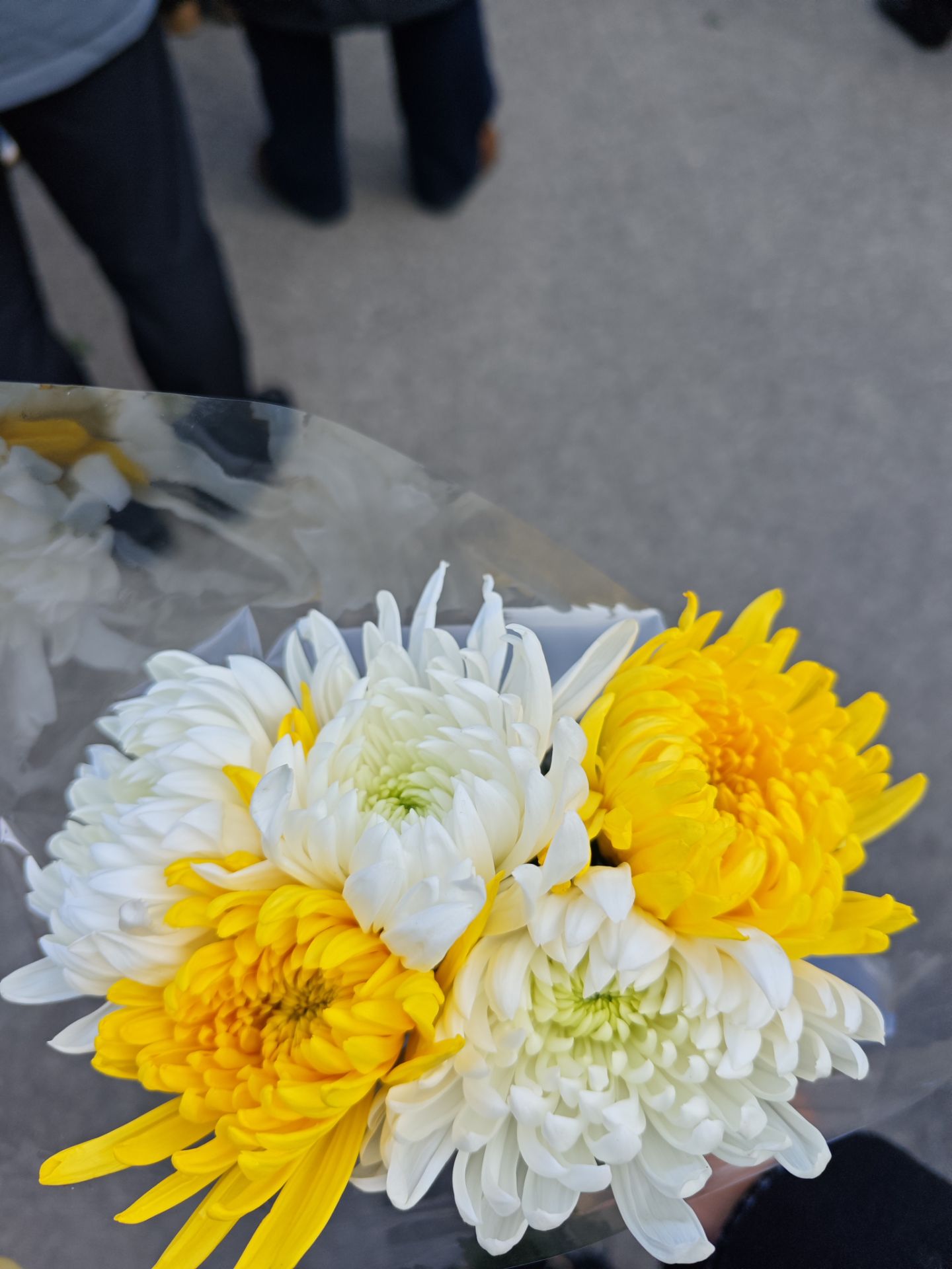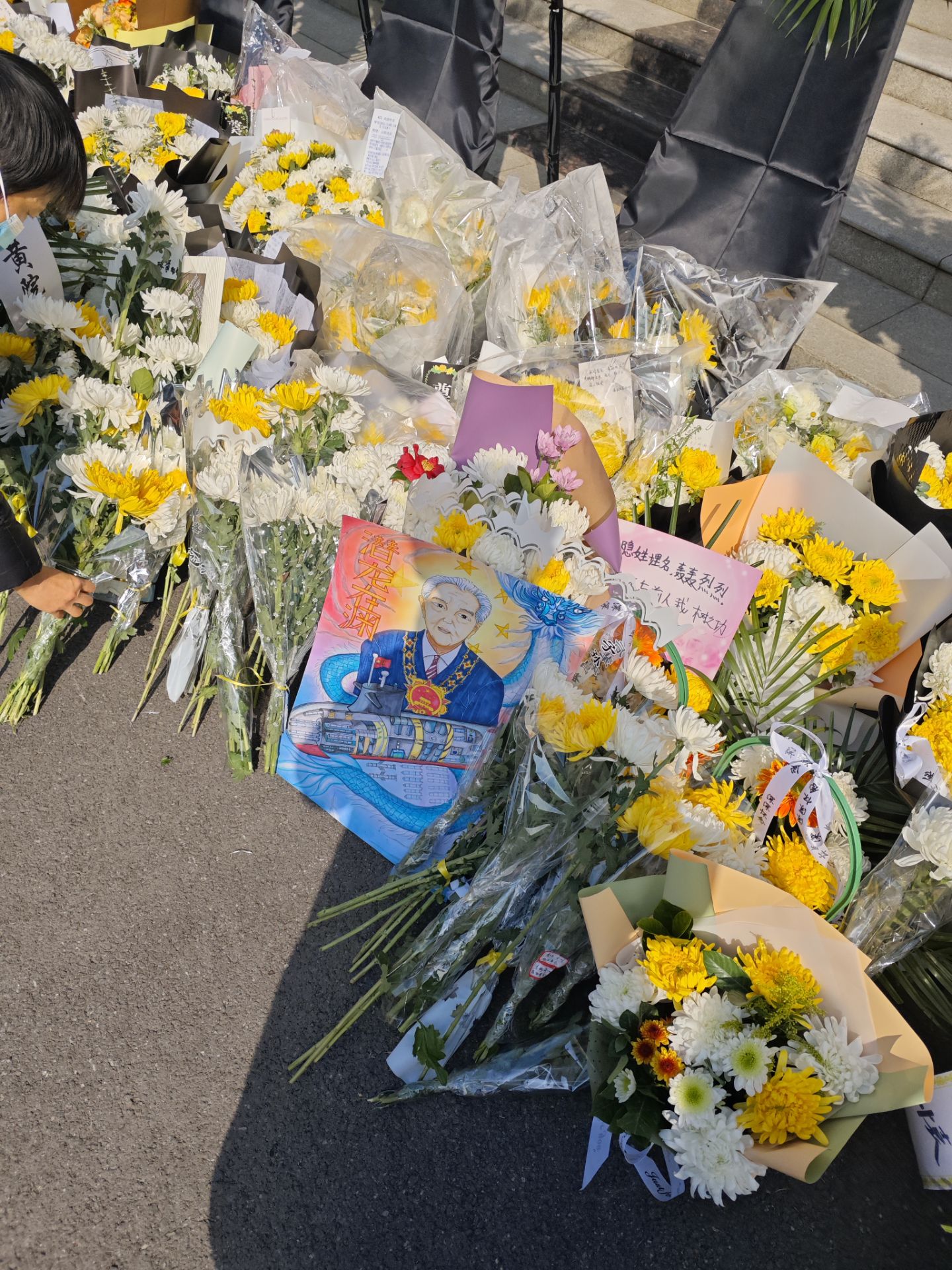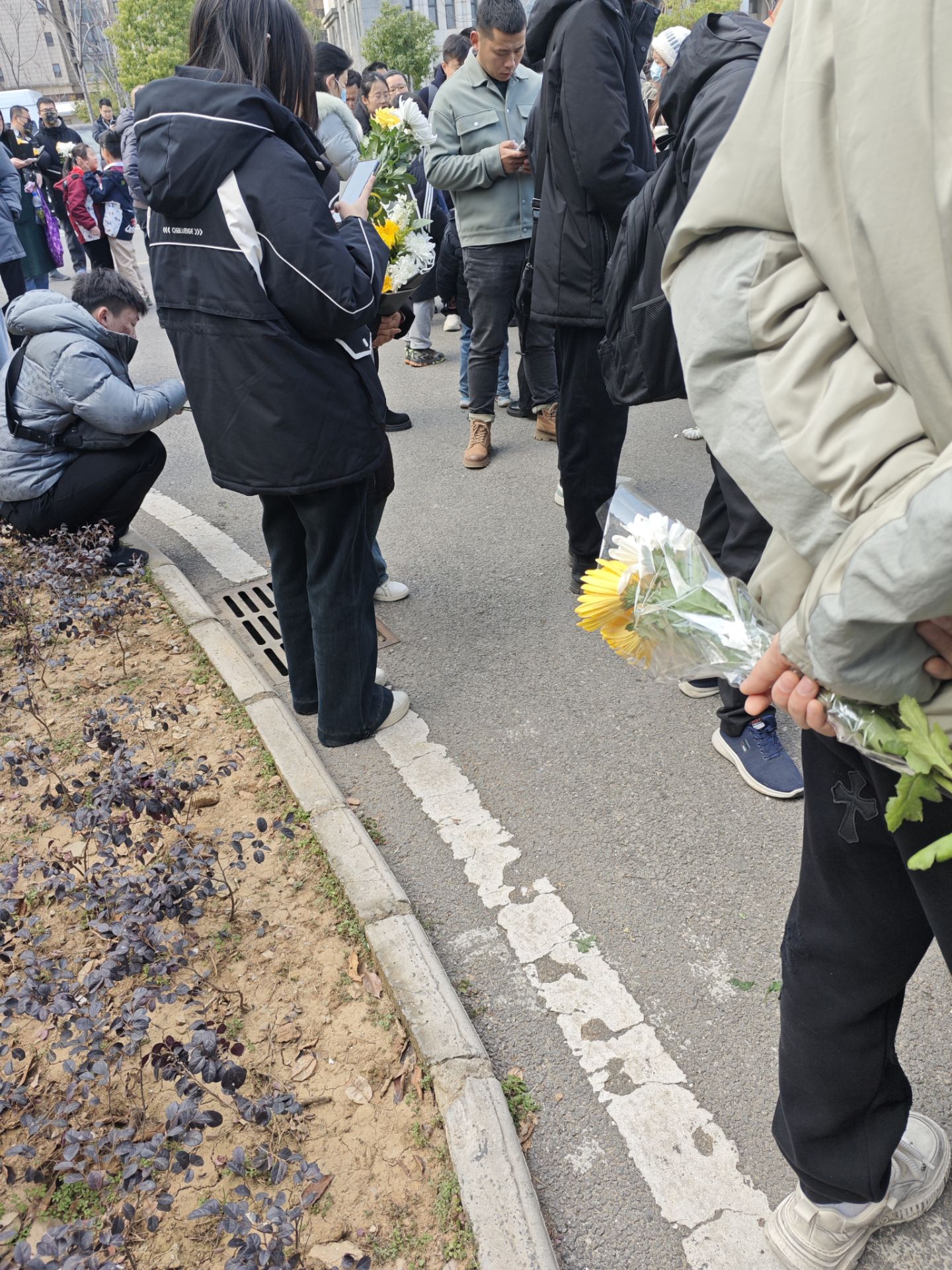 这是一个周一上午,大部分的人应该还是要投身到各自的工作、生活中去,可殡仪馆附近依然人潮拥挤,尽是手捧菊花,自发前来悼念的群众,还有更多的鲜花以外卖的形式不断朝这里涌来。告别会上午十点开始,不过此时只有黄院士的亲人朋友、学生故旧能够参与,一个小时后才会对公众开放。我自抵达武汉到现在还水米未进,于是先在附近买了一束菊花,又买了一瓶汽水补充体力,和群众一起在工作人员的组织下沉默地等待着。