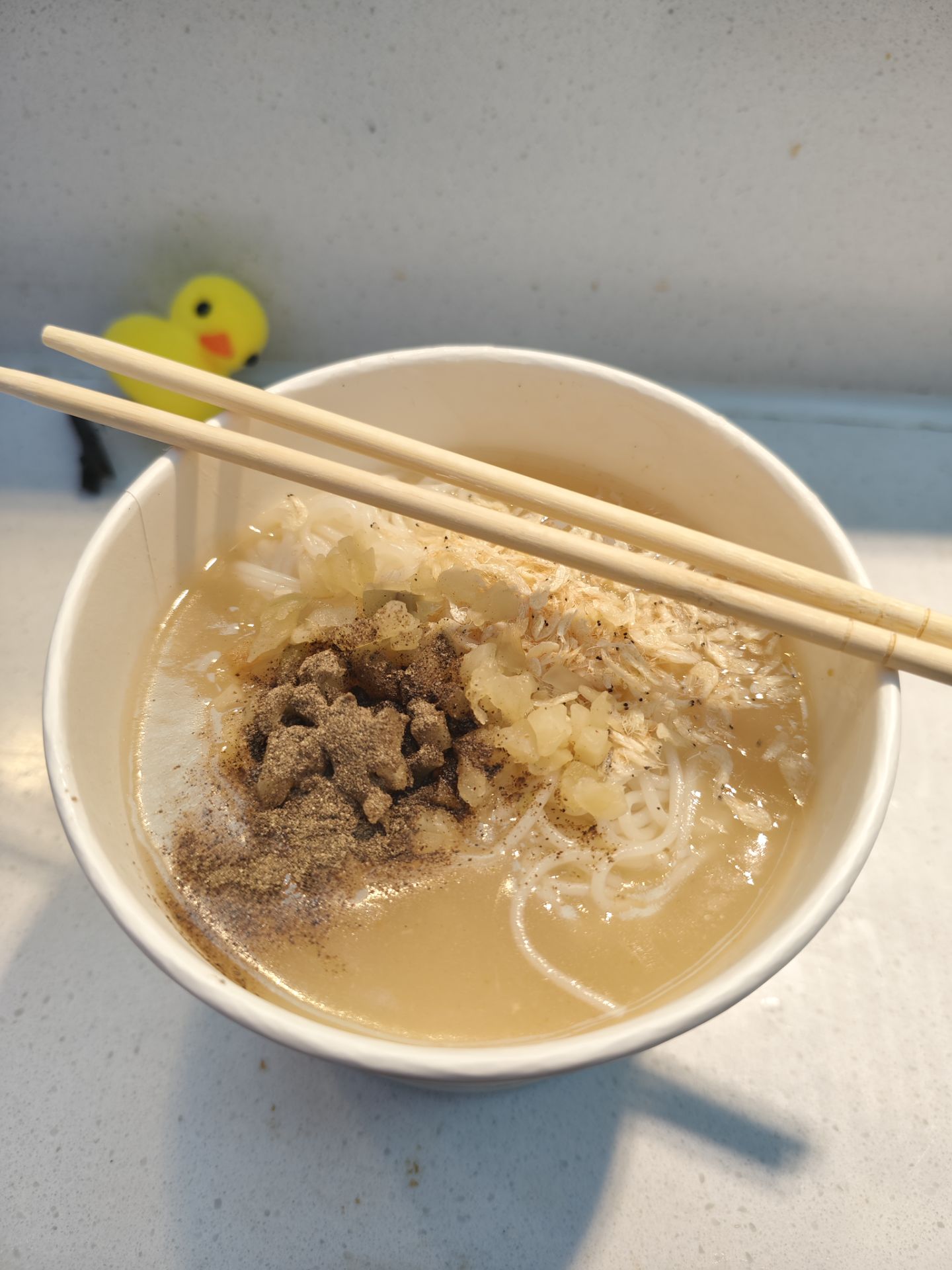 在一食万巷吃了一碗鱼煳粉,这个地方和这样小吃都来自那位当地知友半山同志的热情推荐。鱼煳粉的汤底据说是用长江里捞的小鲫鱼熬透起糊,又加以大量胡椒粉,我点的这一份还放了虾米,尝起来鲜味非常。一碗下肚,大冷天的也浑身热烘烘冒汗。