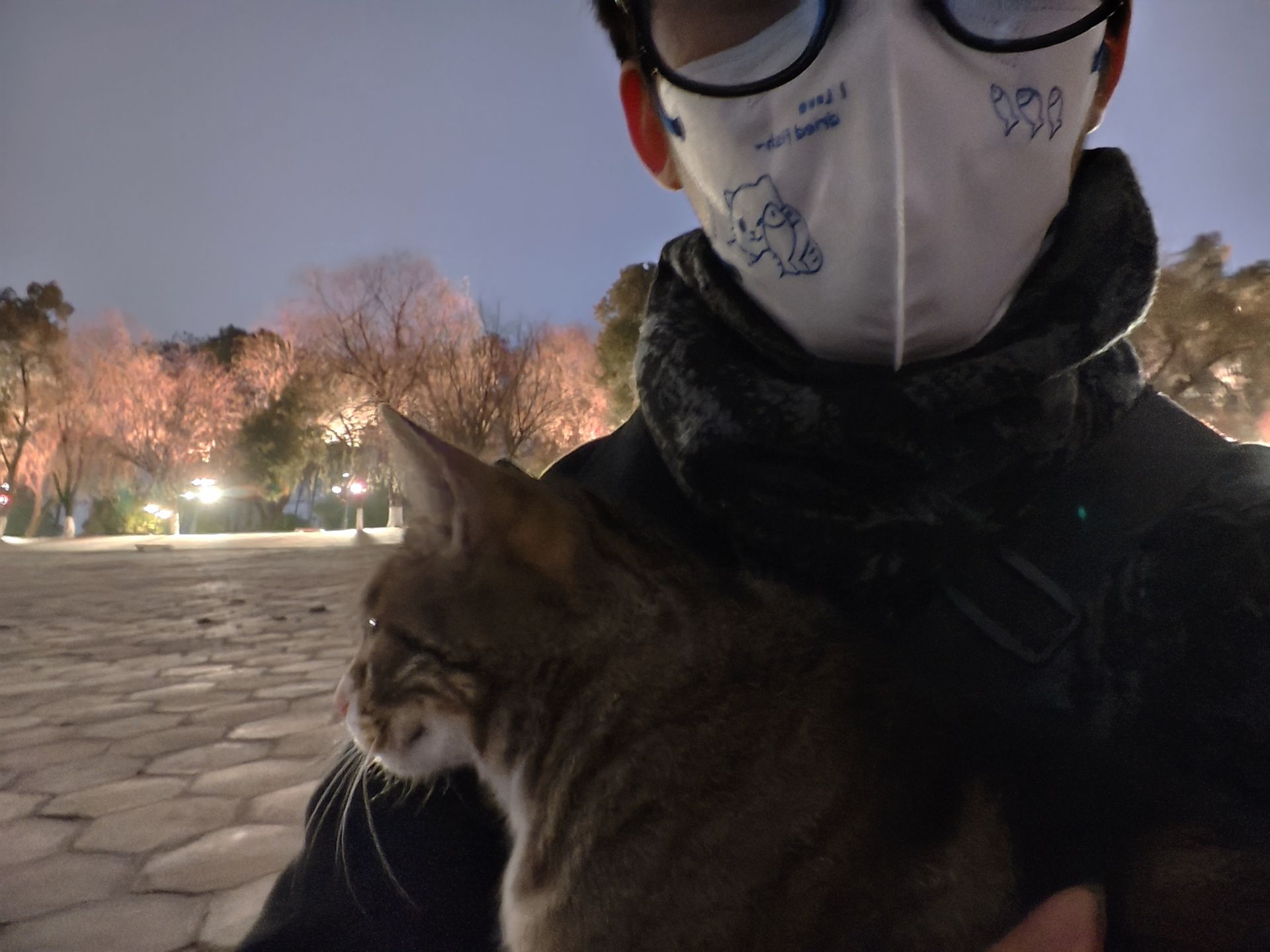 知音难得,在长江边得遇猫猫兄,犹如湖心亭中煮酒客得遇张岱,顿生相惜之情。我于是安心抱着猫猫兄一同夜赏长江,时而吟诵毛主席“神女应无恙”词,杨慎“惯看秋月春风”句,崔颢“日暮乡关何处是”篇,以抒发胸中激荡之情。猫猫兄亦不时喵喵相和,只恨马上相逢,身无长物,不能以酒相待,结为知己。